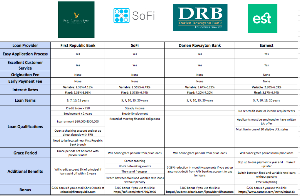 Click on any of the icons below for a review of the student loan products offered by each company.