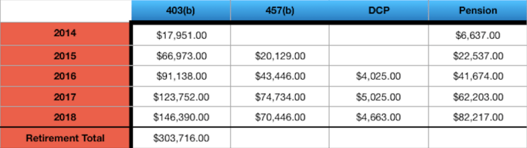 My current approach is maximizing my annual contributions to my 403(b), which for 2018, is $18,500. In years past, I’ve maximized my annual contributions to my 457(b), but again, because of this new rental property I purchased, my plan is to save as much after-tax money as possible and work on building up the rental property to increase my earnings now as opposed to waiting until retirement to collect.